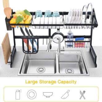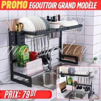 Egouttoir à vaisselle à 2 niveaux 85 Cm en Acier inoxydable avec 5 crochets