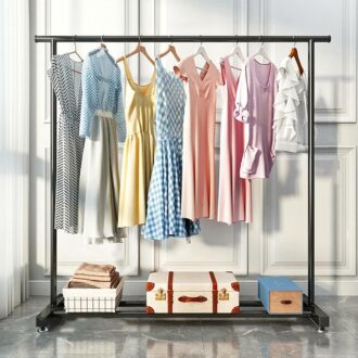 Apportez une touche moderne et pratique à votre intérieur avec ce porte-vêtements au style industriel. Conçu en métal robuste, il offre un espace de rangement spacieux pour suspendre vos habits, manteaux ou accessoires tout en assurant une excellente stabilité. Idéal pour la chambre, la buanderie ou l’entrée, il allie élégance et fonctionnalité pour un rangement organisé et esthétique.
