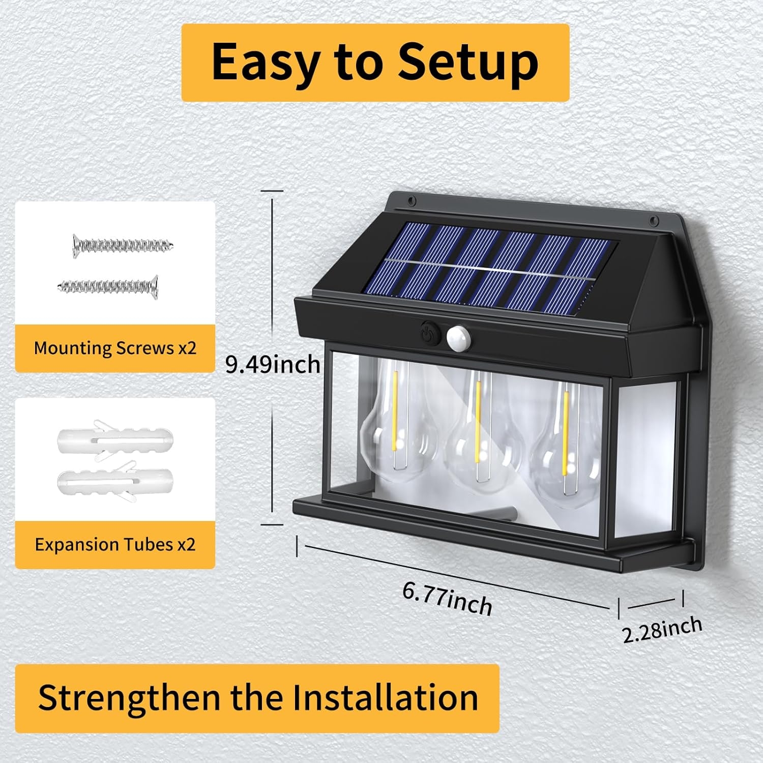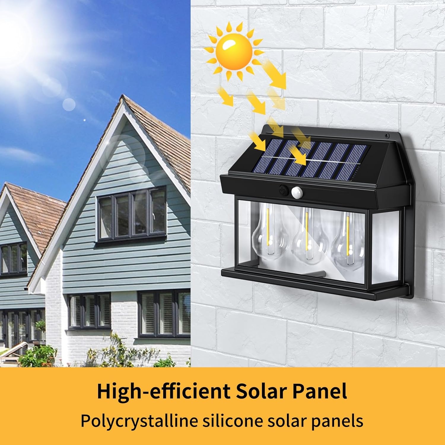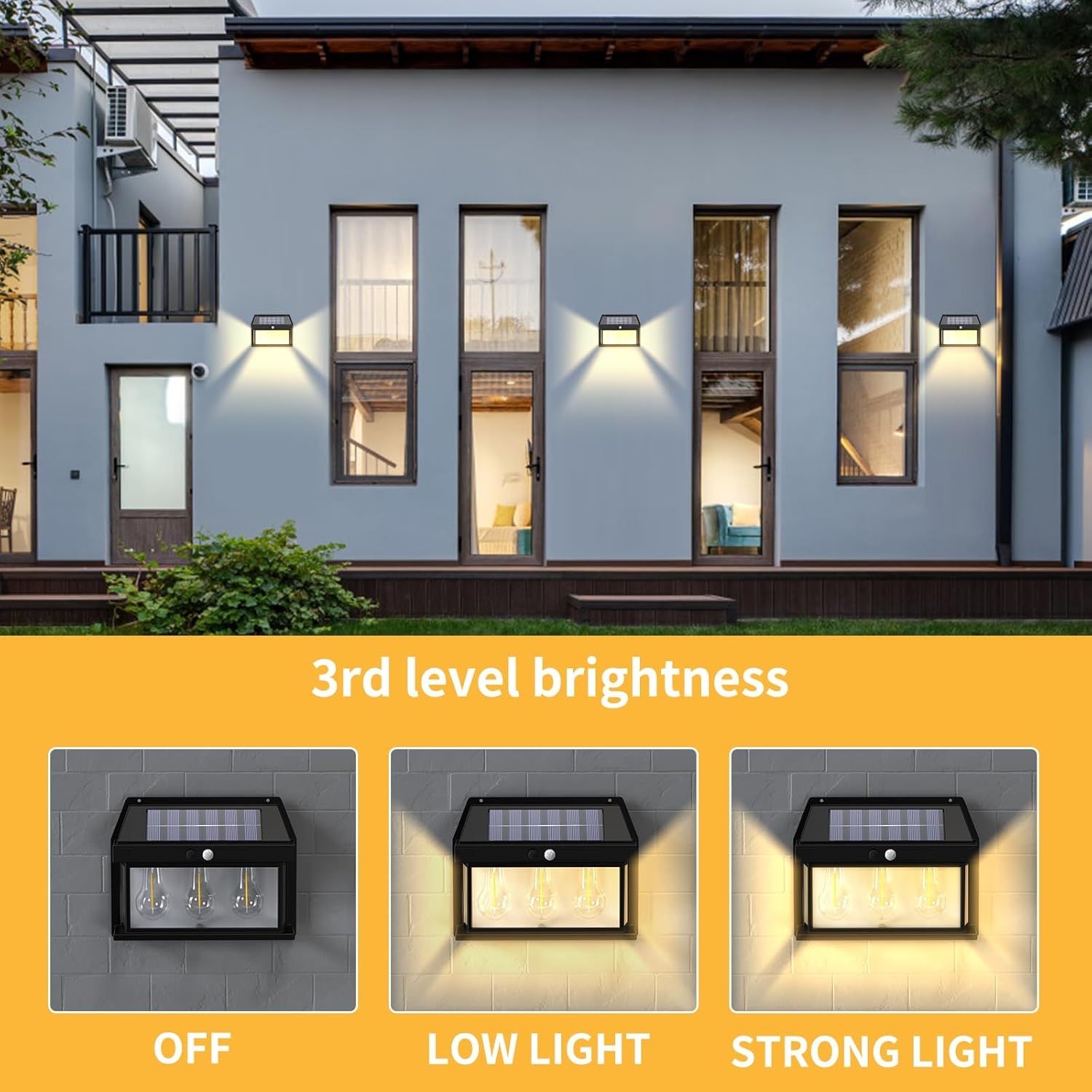 Applique Murale avec Trois Lampes Solaire et Détecteur De Mouvement Étanche