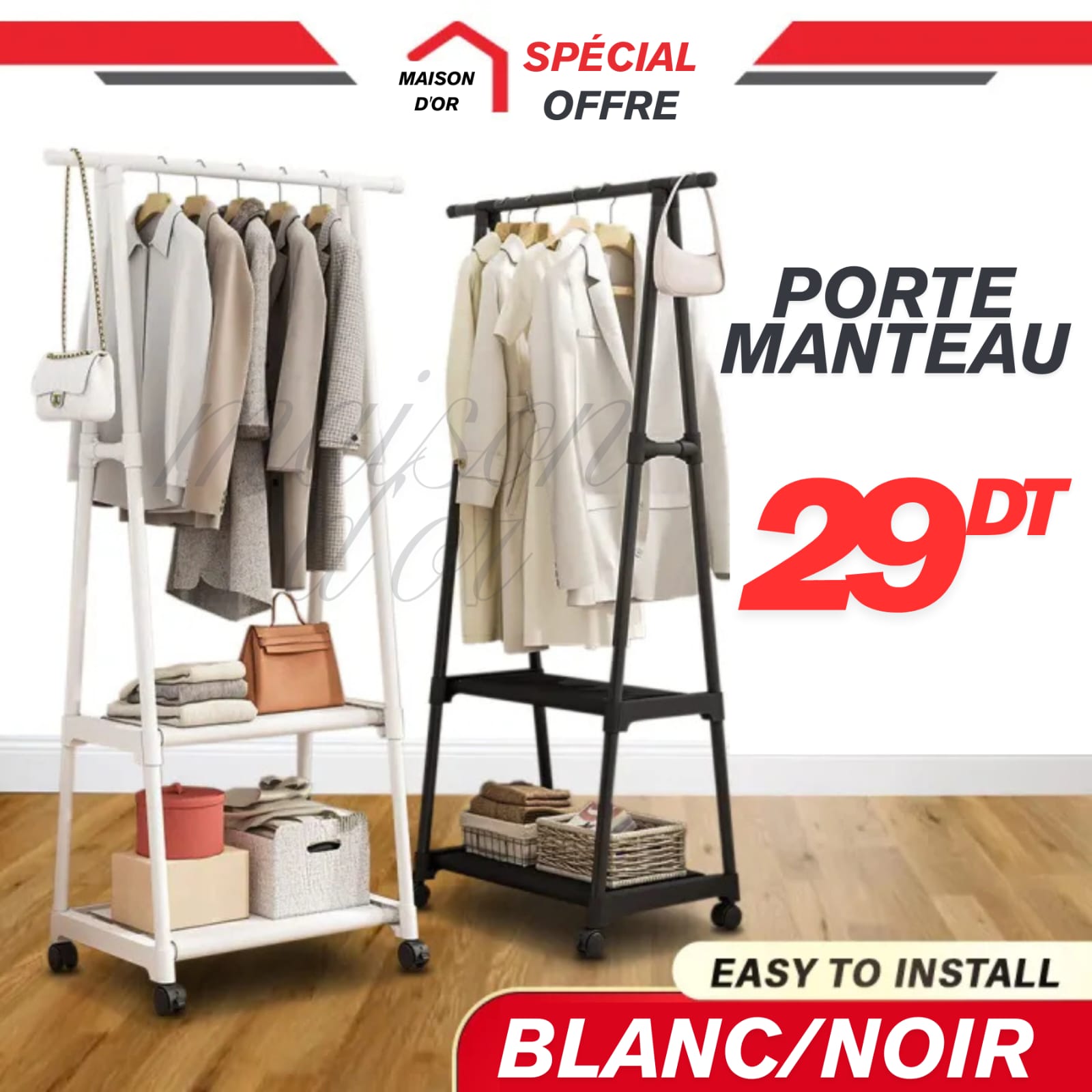 Découvrez notre porte-manteau sur pied, un portant à vêtements concis et pratique, idéal pour un usage intérieur ou extérieur. Conçu pour offrir une solution de rangement efficace, ce support de vêtements est équipé d’une structure en tuyau robuste, garantissant une meilleure capacité portante pour tous vos manteaux, vestes, sacs et accessoires.